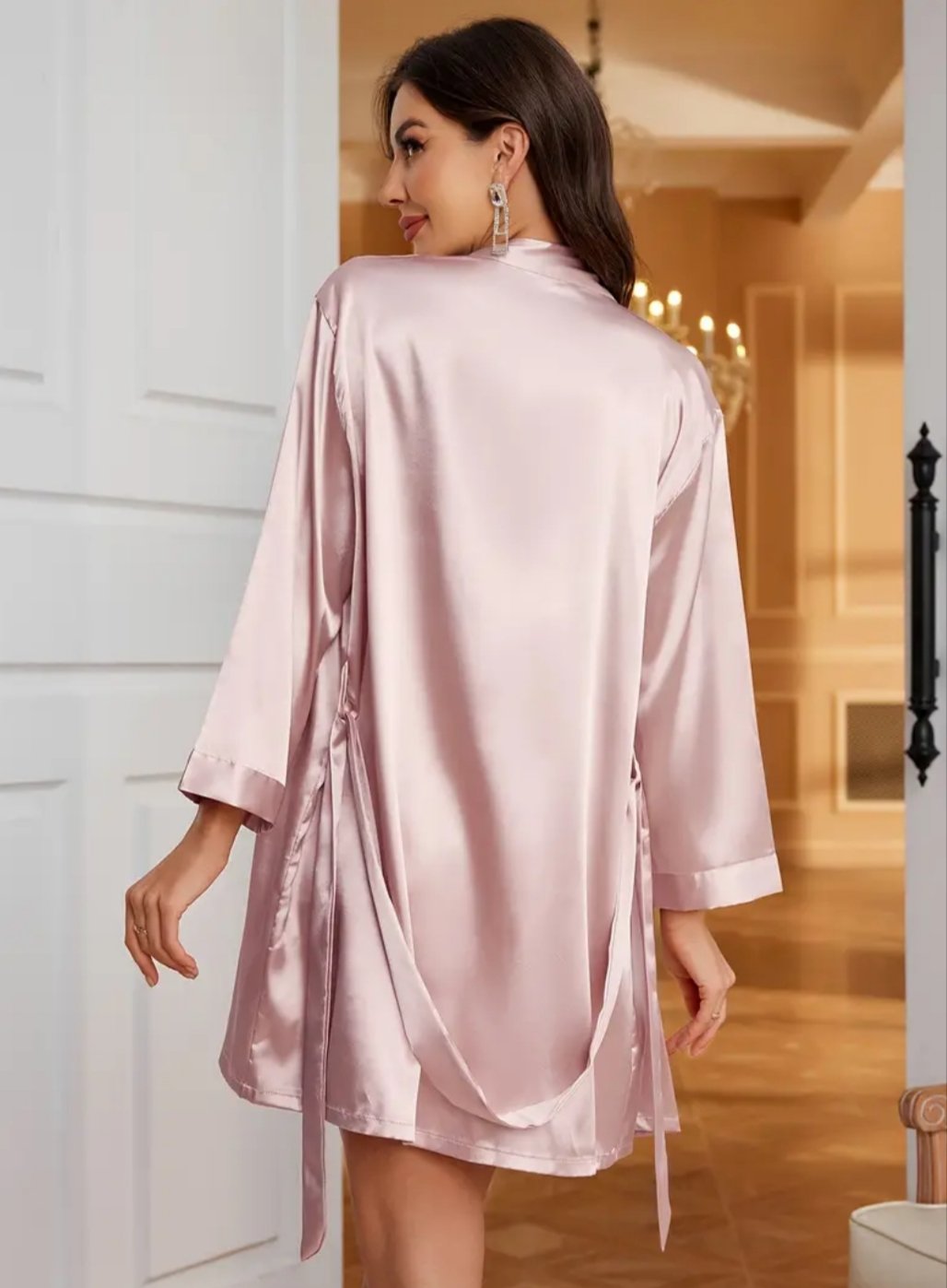 Bata cuello V de amarrar en la cintura